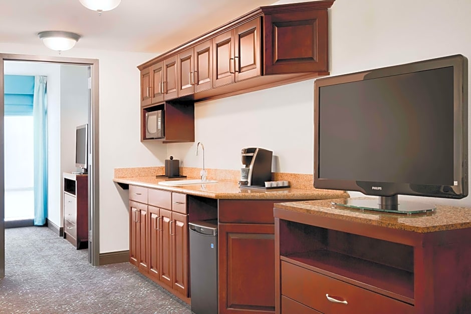 This suite features a separate seating area with a sofa bed, microwave and refrigerator.